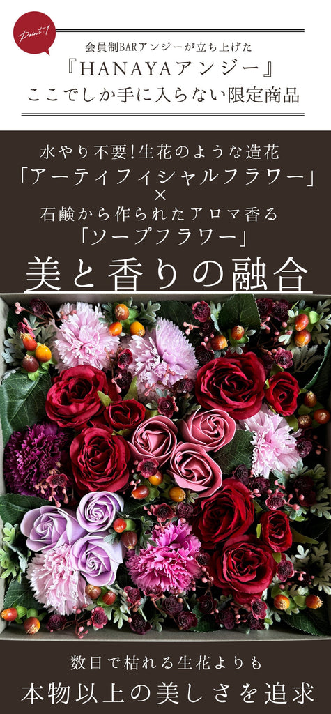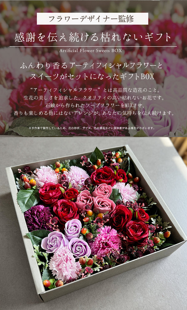 香るアーティフィシャルフラワーとソープフラワーのフラワーボックスと